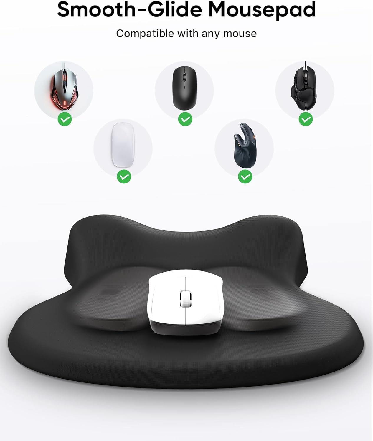 Engineered for Comfort – The breathable surface of the mouse pad prevents sweating, while the ergonomic curve supports your natural wrist posture. Memory foam cushioning relieves pressure and prevents wrist fatigue