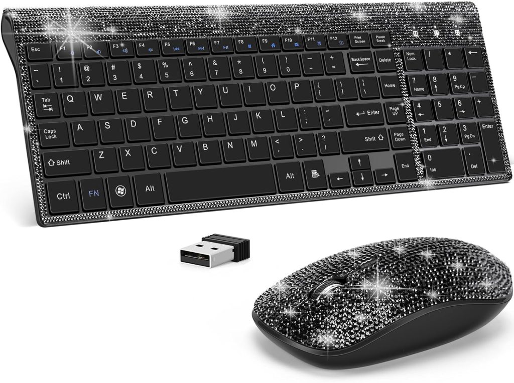 4. Fonicer Wireless Rhinestone Keyboard & Mouse Set