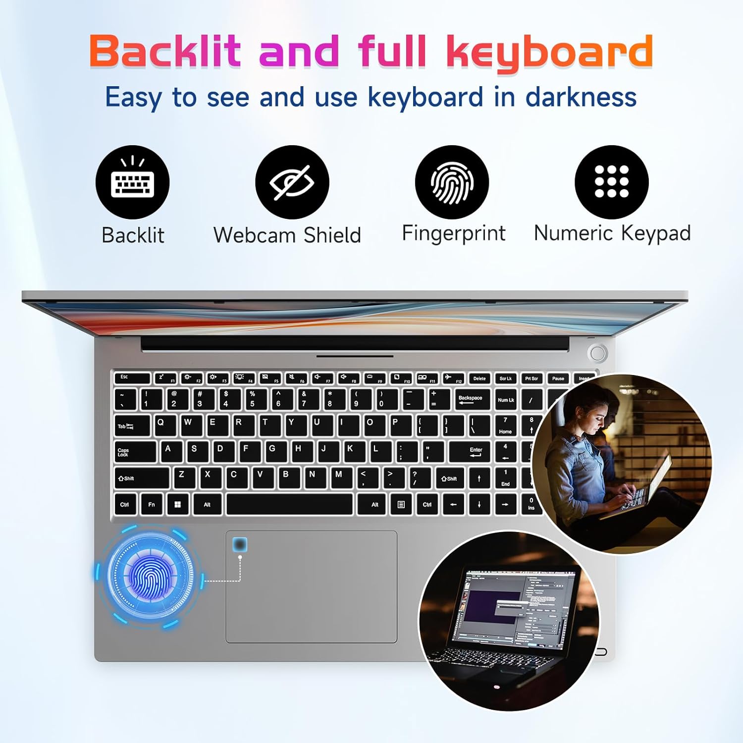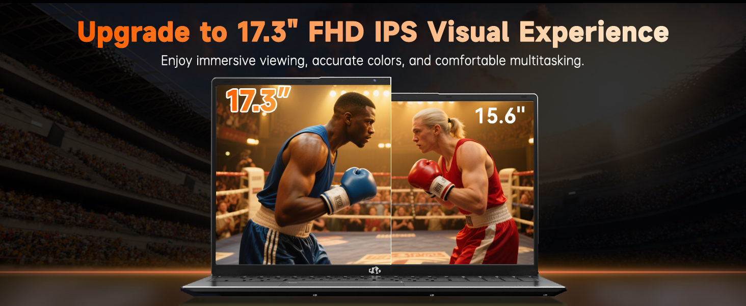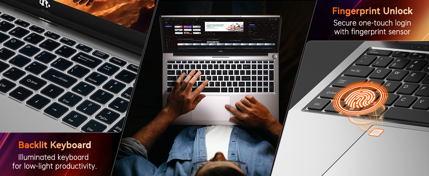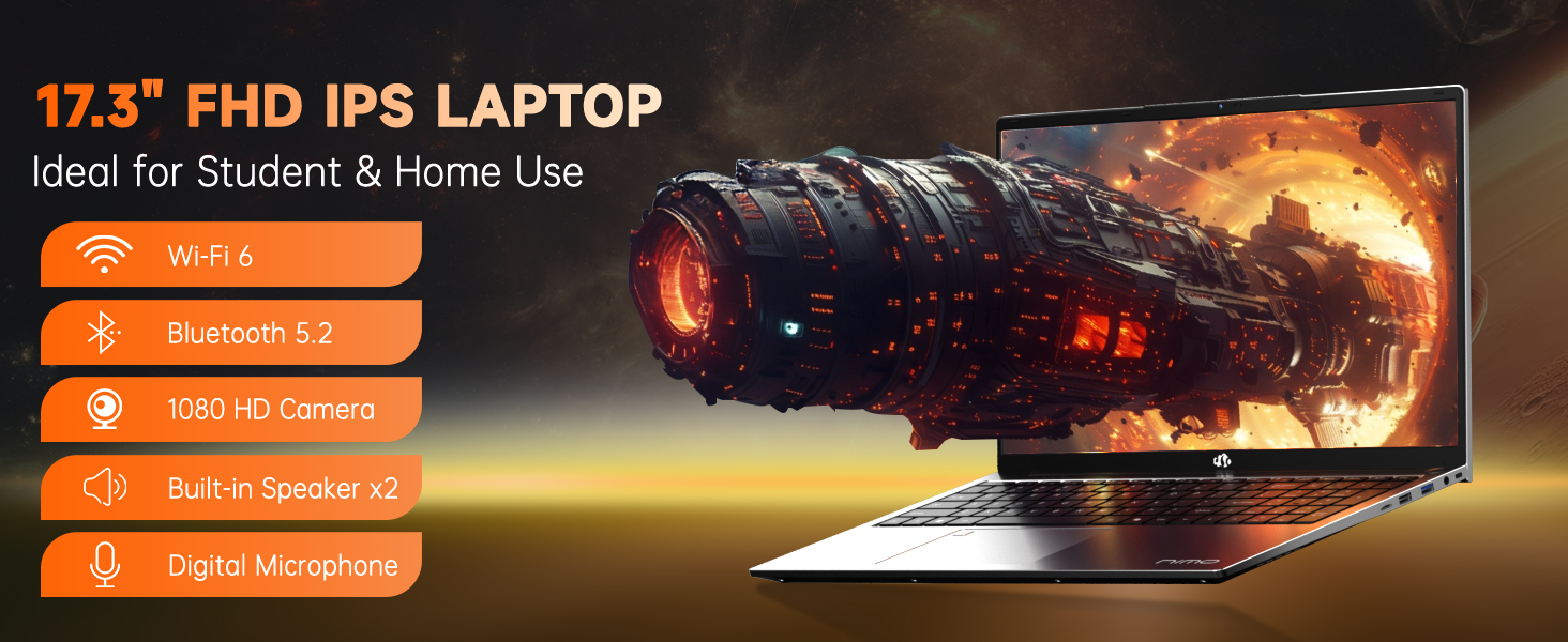 【17.3 FHD IPS & Backlit Keyboard with Fingerprint Reader】The NIMO 17.3-inch laptop offers a stunning visual experience with its FHD (1920×1080) anti-glare display. The 85% screen-to-body ratio with narrow bezels creates an immersive viewing environment. The built-in fingerprint sensor on the touchpad allows for quick and easy login with just a touch.
